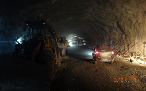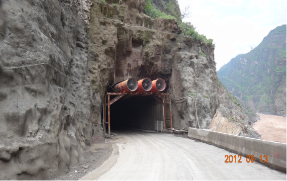 工程概述:猴子岩水电站位于四川省甘孜藏族自治州康定县孔玉乡,是大渡河干流水电规划“三库22级”的第9级电站。电站装机容量1700MW,电站坝址距上游丹巴县城约47km,距下游泸定县城约89km,距成都402km。库区右岸有省道S211(瓦斯沟口~丹巴)公路相通,在坝址下游65km处的瓦斯沟口与国道G318线相接,对外交通方便。猴子岩水电站枢纽建筑物由面板堆石坝、泄洪洞、放空洞、发电厂房、引水及尾水建筑物等组成。我司主要承建该电站导流洞工程施工。